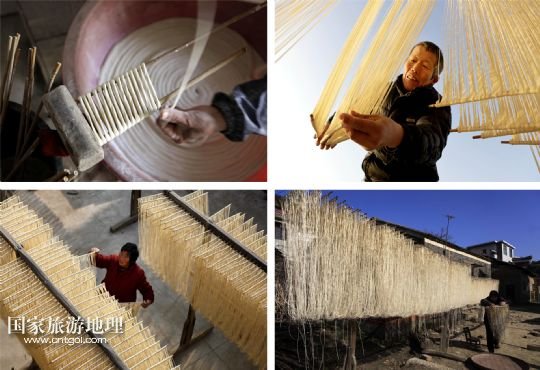 國家旅游地理 江西九江12月30日訊 12月30日,江西省都昌縣左里鎮(zhèn)秦家圈村村民在制作手工拉面。年節(jié)臨近,位于鄱陽湖畔的江西省都昌縣左里鎮(zhèn)秦家圈村的村民們忙著制作手工拉面。