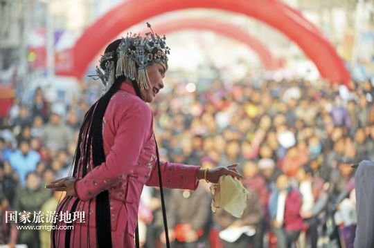國家旅游地理 1月2日訊 2014年1月2日,在安徽省亳州市譙城區(qū)十河鎮(zhèn),演員在表演亳州非遺劇種“二夾弦”。當日,安徽省亳州市譙城區(qū)2014年“三下鄉(xiāng)”活動啟動,當?shù)蒯t(yī)療、文化、科技部門的“三下鄉(xiāng)”服務隊到基層開展文化、衛(wèi)生、科技、法律下鄉(xiāng)活動,為基層群眾送上新年的問候。 /新華社發(fā)(張延林 攝)