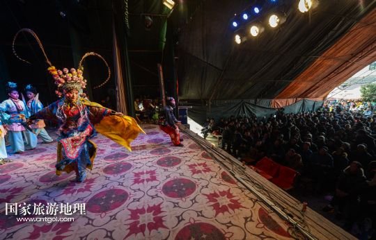 國家旅游地理 浙江金華1月3日訊 1月3日,武義壺山婺劇團(tuán)在武義縣三板橋村演出,此次演出要連演3天。新年伊始,浙江省金華市武義縣的各個鄉(xiāng)鎮(zhèn)迎來了熱鬧的“婺劇迎春”,通過政府、企業(yè)、百姓多方出資的方式,邀請數(shù)十支婺劇團(tuán)在武義各個鄉(xiāng)鎮(zhèn)演出, 幾乎場場爆滿。