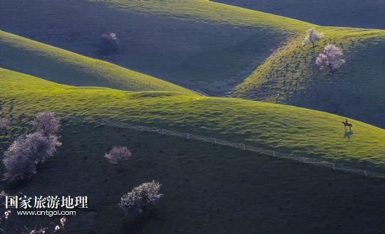 國(guó)家旅游地理 新疆伊犁4月12日訊 新源縣吐爾根鄉(xiāng)雪山映襯下的一棵杏樹(4月9日攝)。進(jìn)入四月,位于新疆伊犁哈薩克自治州新源縣吐爾根鄉(xiāng)的原始杏花林進(jìn)入盛花期,杏花林鑲嵌在山間,猶如一幅美妙的畫卷。 /新華社記者 趙戈 攝