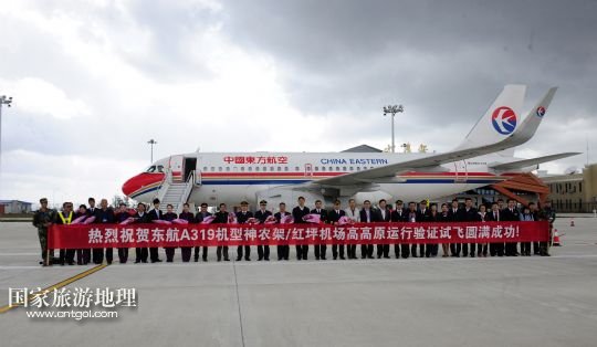 國家旅游地理 湖北神農(nóng)架4月28日訊 4月28日,試飛成功后機(jī)組人員在飛機(jī)前合影留念。當(dāng)日,東航A319機(jī)型在神農(nóng)架紅坪機(jī)場通過高高原運(yùn)行驗(yàn)證,試飛成功。神農(nóng)架機(jī)場海拔高度2580米,是華中地區(qū)海拔最高的機(jī)場,將于5月8日正式通航,首飛東方航空公司的上海—武漢—神農(nóng)架航線。從武漢到神農(nóng)架的旅途時(shí)間將由過去乘汽車9小時(shí)縮短至50分鐘。 /新華社記者 郝同前攝