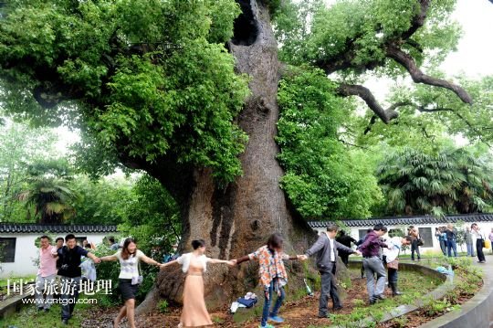 國家旅游地理 江西上饒5月18日訊 5月17日,游客在江西省德興市海口鎮(zhèn)??诖迩旯耪僚酝嫠!=魇〉屡d市??阪?zhèn)??诖逵幸豢?800多歲“高齡”的巨型古樟樹,歷史上曾遭受過多次雷擊、火災(zāi)等,其中最近的一次發(fā)生在2010年10月1日,由于村內(nèi)孩童進(jìn)入可容納幾十人的樹洞內(nèi)玩耍,不慎引發(fā)火災(zāi),致使大火從樹洞里燒起,讓這棵千年古樟幾近滅頂。此后,當(dāng)?shù)卮迕褡园l(fā)捐款近6萬元,請來有關(guān)專家救治。經(jīng)過近4年的精心護(hù)救,如今這棵千年古樟再度逢春,枝繁葉茂,吸引了各方游客前來觀賞。 /新華社發(fā)(卓忠偉 攝)