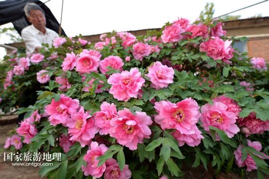 國家旅游地理 內(nèi)蒙古赤峰5月23日訊 5月22日在內(nèi)蒙古寧城縣長皋村烏氏家族的庭院里拍攝的盛開的牡丹花。在內(nèi)蒙古赤峰市寧城縣小城子鎮(zhèn)長皋村,有一株300多歲“高齡”的牡丹成為當?shù)匾痪?。該株牡丹枝高約1.7米,直徑約3米,康熙年間作為皇家嫁妝移植至此,雖經(jīng)300余年的風風雨雨,如今仍不失國色天香,每年吸引大批游人前來觀賞。新華社發(fā)(白鐵軍 攝)