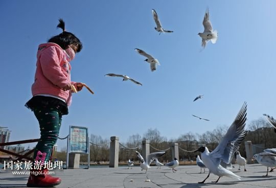 國(guó)家旅游地理 寧夏銀川3月10日訊 3月9日,在銀川市燕鴿湖,一位小朋友在喂食紅嘴鷗。近日,隨著寧夏銀川市各湖泊、濕地冰面融化,銀川市興慶區(qū)燕鴿湖迎來(lái)數(shù)百只紅嘴鷗在湖面飛翔覓食。近年來(lái),銀川市持續(xù)加大對(duì)濕地的保護(hù)與恢復(fù),每年春季都有大批候鳥(niǎo)光顧,成為銀川市一道美麗風(fēng)景。 /新華社記者 王鵬 攝