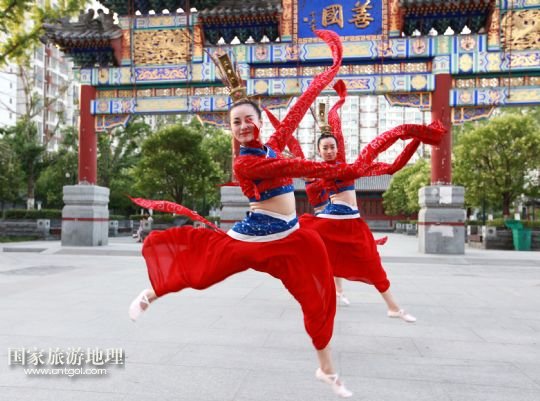 國家旅游地理 山東滕州6月14日訊 6月13日,在山東省滕州市老縣衙善國文化廣場,滕州柳琴劇團演員向市民展演柳琴戲。