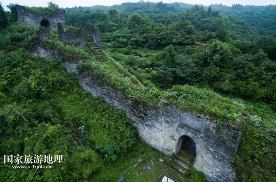 國家旅游地理 德國波恩7月4日訊 從空中看貴州播州海龍屯飛鳳關(7月3日攝)。海龍屯遺址位于遵義老城北約30里的龍巖山東麓,始建于1257年,毀于1600年。遺址所在山峰相對高度約350米,三面環(huán)水,一面銜山,地勢險要,如今周長約6公里的環(huán)囤城墻尚存,囤東銅柱、鐵柱、飛虎、飛龍、朝天、飛鳳六關,囤西后關、西關、萬安三關依然屹立。囤頂平闊,囤內(nèi)遺有“老王宮”和“新王宮”兩組重要建筑基址,面積均在2萬平方米左右,此外尚有金銀庫、四角亭、采石場、校場壩、環(huán)囤馬道和敵樓等遺跡。
